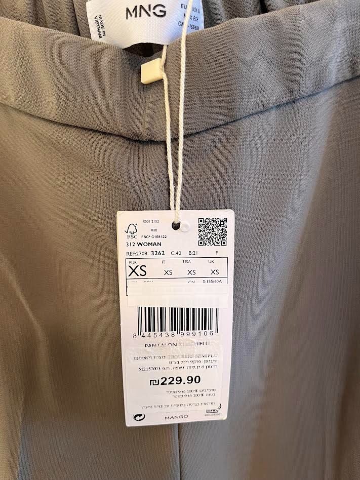 כמות של מכנס ארוך מחוייט ירוק זית מנגו מידה XS