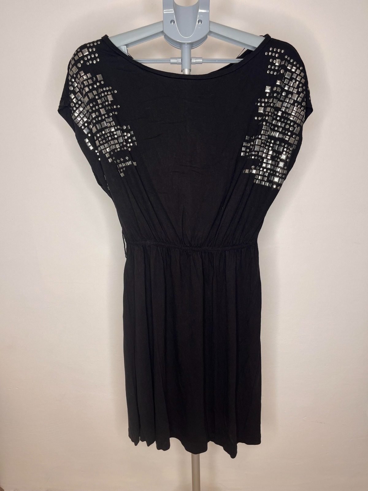 / שמלה שחורה ניטים גומי במותן BERSHKA מידה M